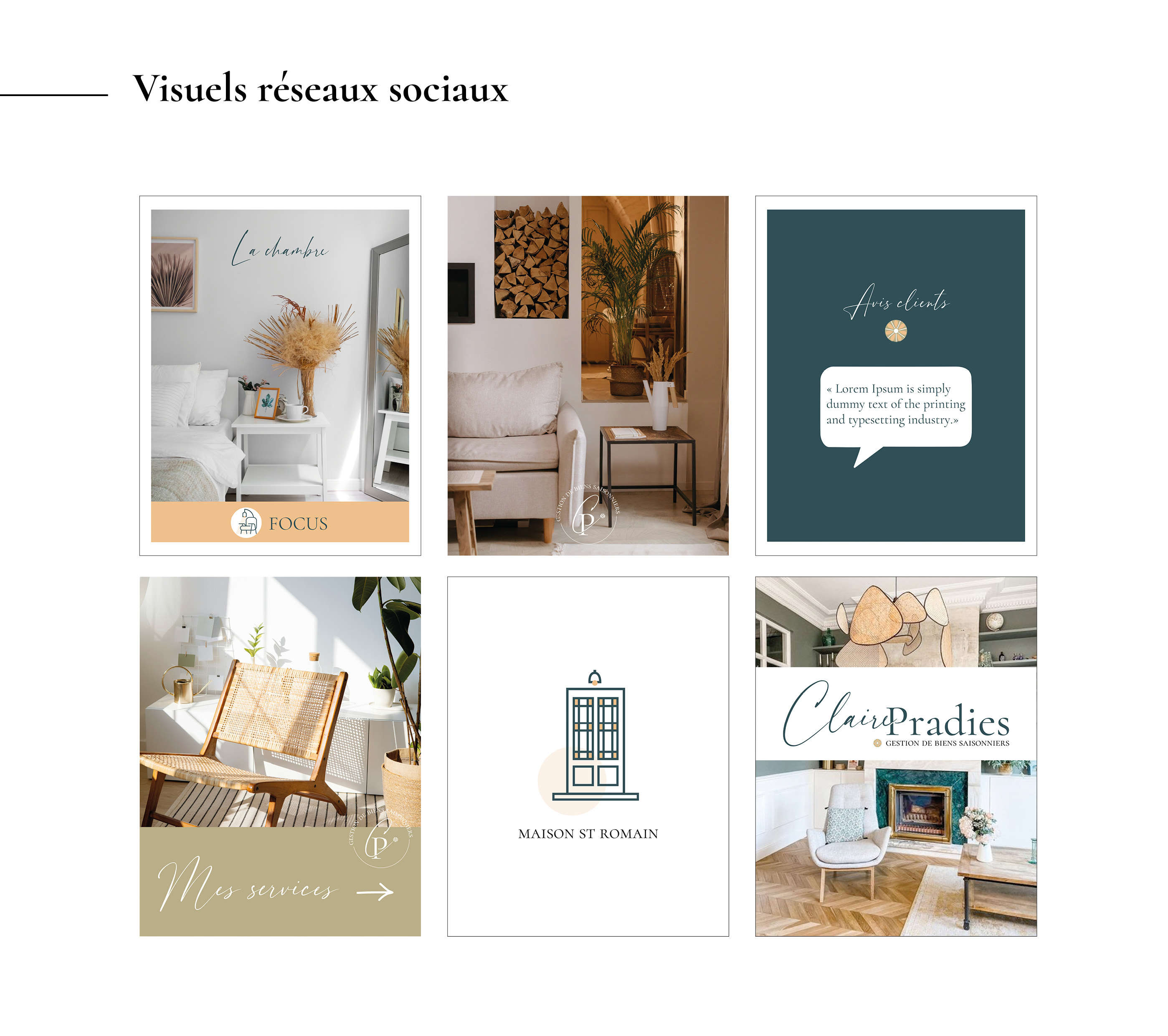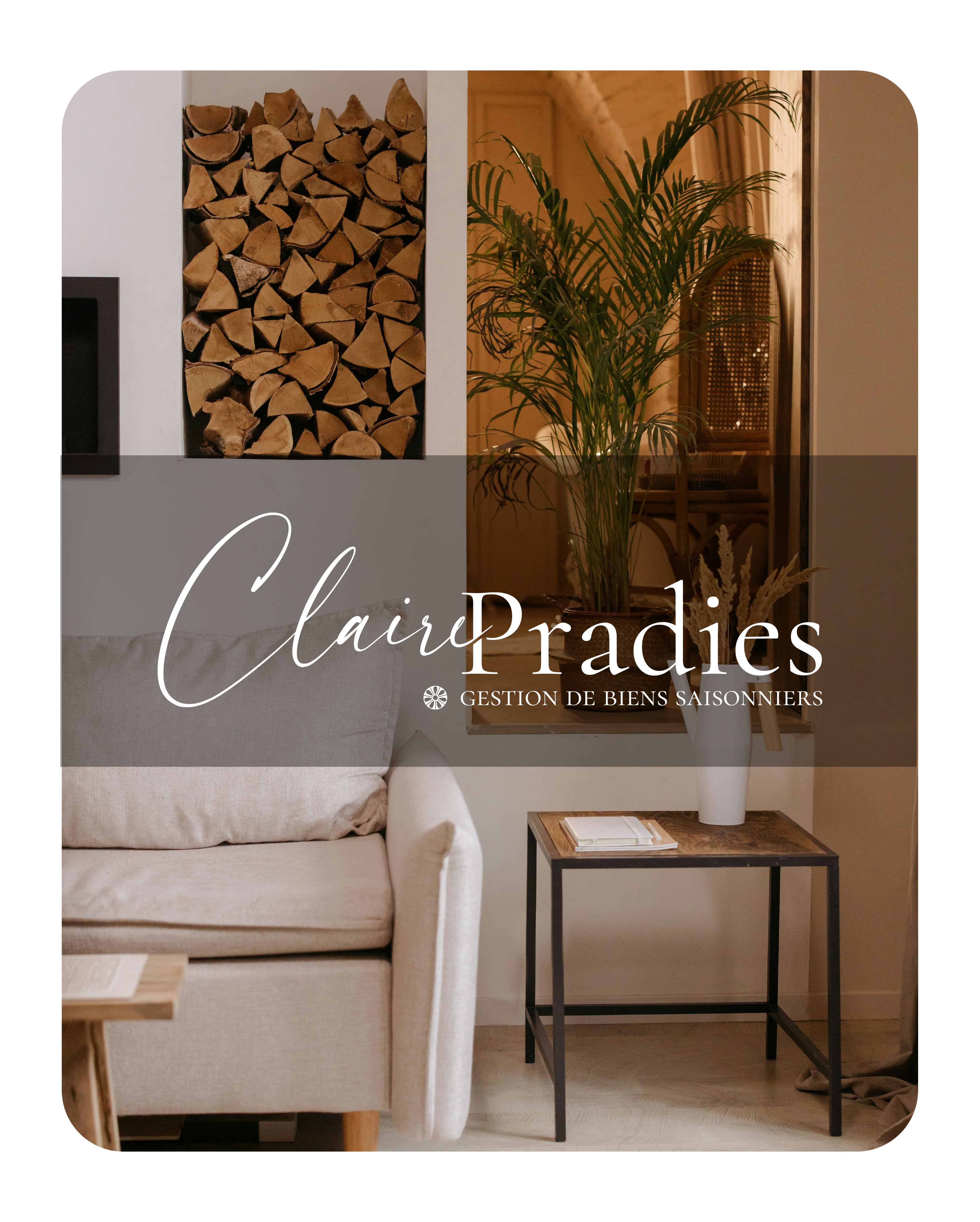 J’ai travaillé sur l’identité visuelle de Claire Pradies, gestionnaire de biens saisonniers. Elle arbore également la casquette de décoratrice, ce qui rend son style unique dans ses différents logements. Associé à ce logo, une charte graphique, des pictogrammes sur mesure et des templates pour communiquer sur les réseaux sociaux.